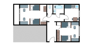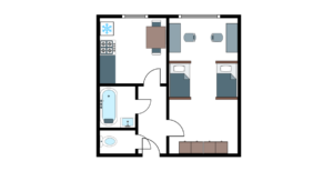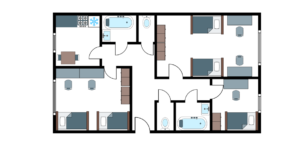 – Privaatsemad ühetoalised korterid (2-kohaline kortertüüpi tuba), kus on magamistuba, mis on sisustatud kahele tudengile, ning olemas on ka WC, duširuum ja köök.