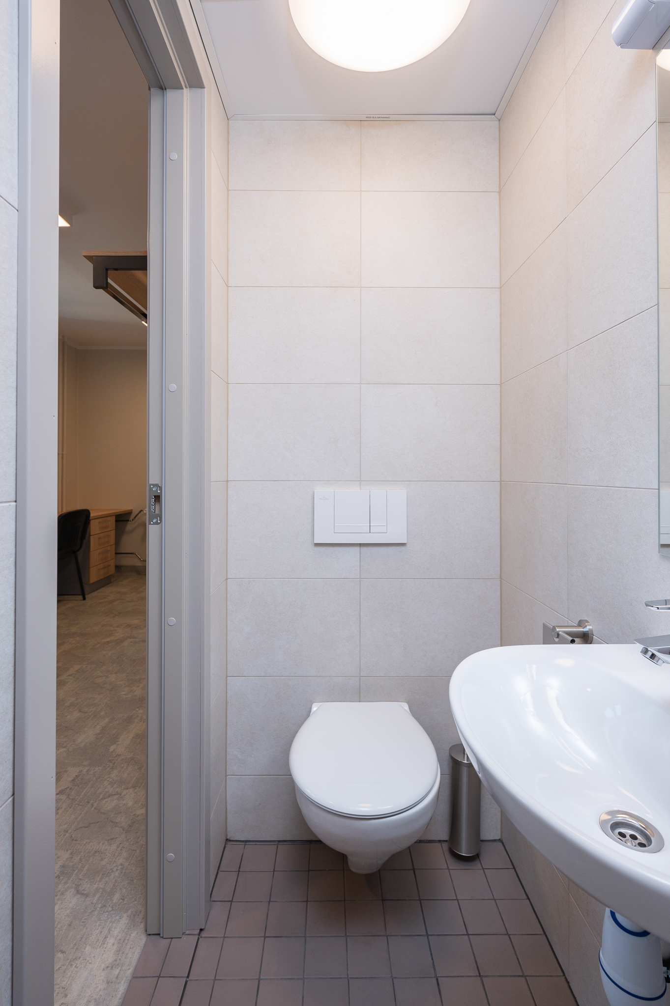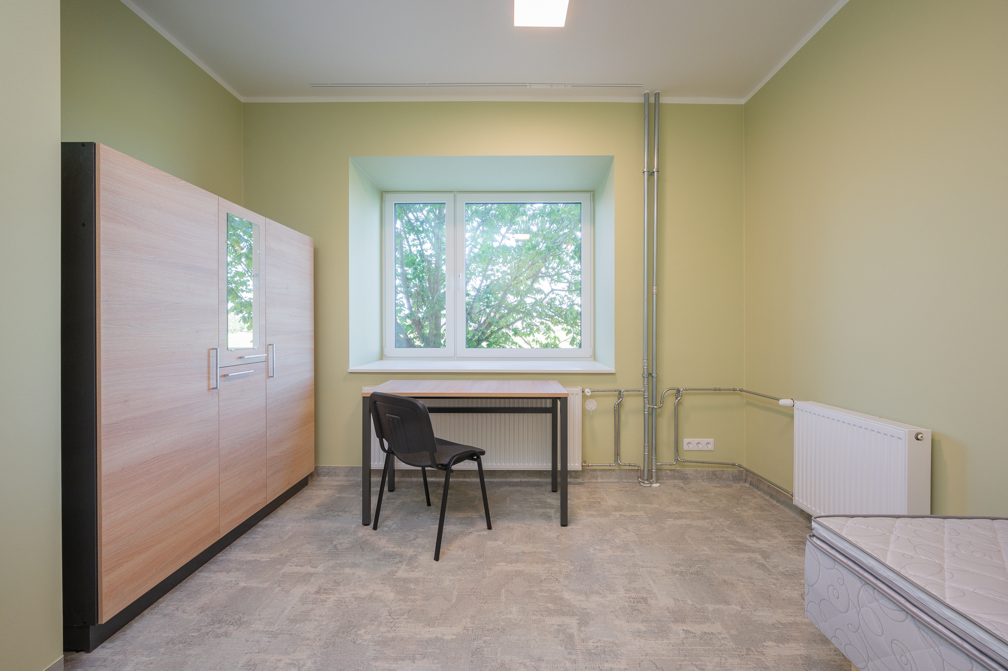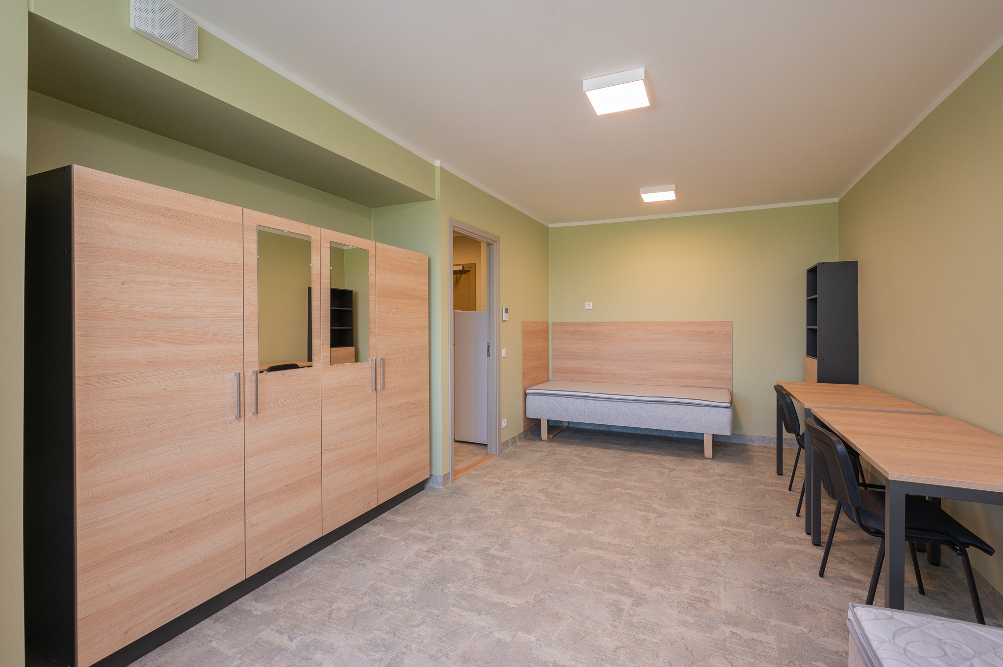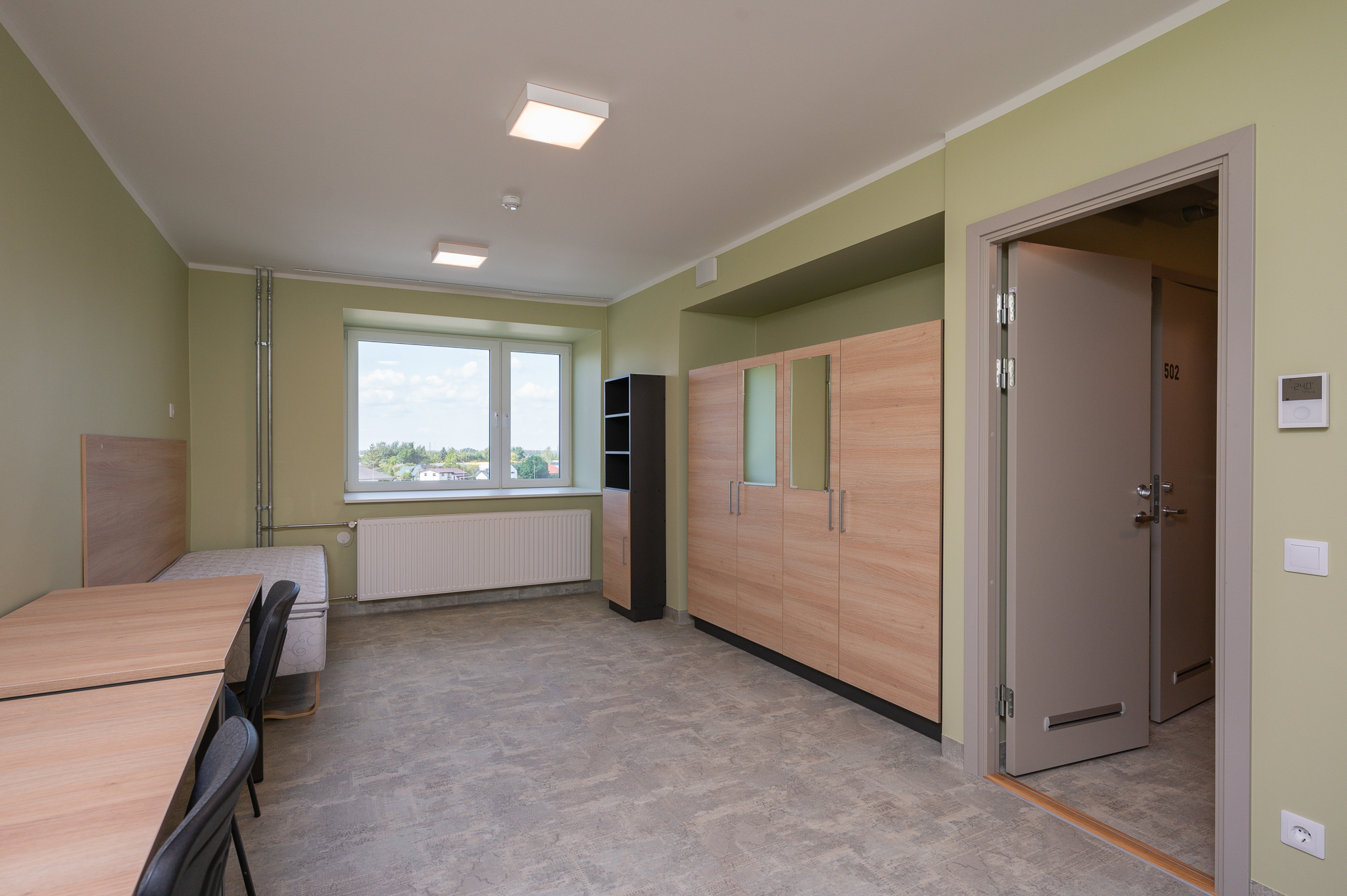 - Ülejäänud hoones on korterites üks 1-kohaline ja üks 2-kohaline tuba, korteris on WC ja duširuum ning külmkapp korteri elanikele. Nende korterite elanike kasutuses on koridoris asuvad ühisköögid, ühte kööki kasutavad nelja korteri elanikud. Köökides on olemas induktsioonpliidid, ahi ja mikrolaineahi. Igal toal on ühisköögis oma tähistatud riiul, kus saab hoiustada köögitarbeid.