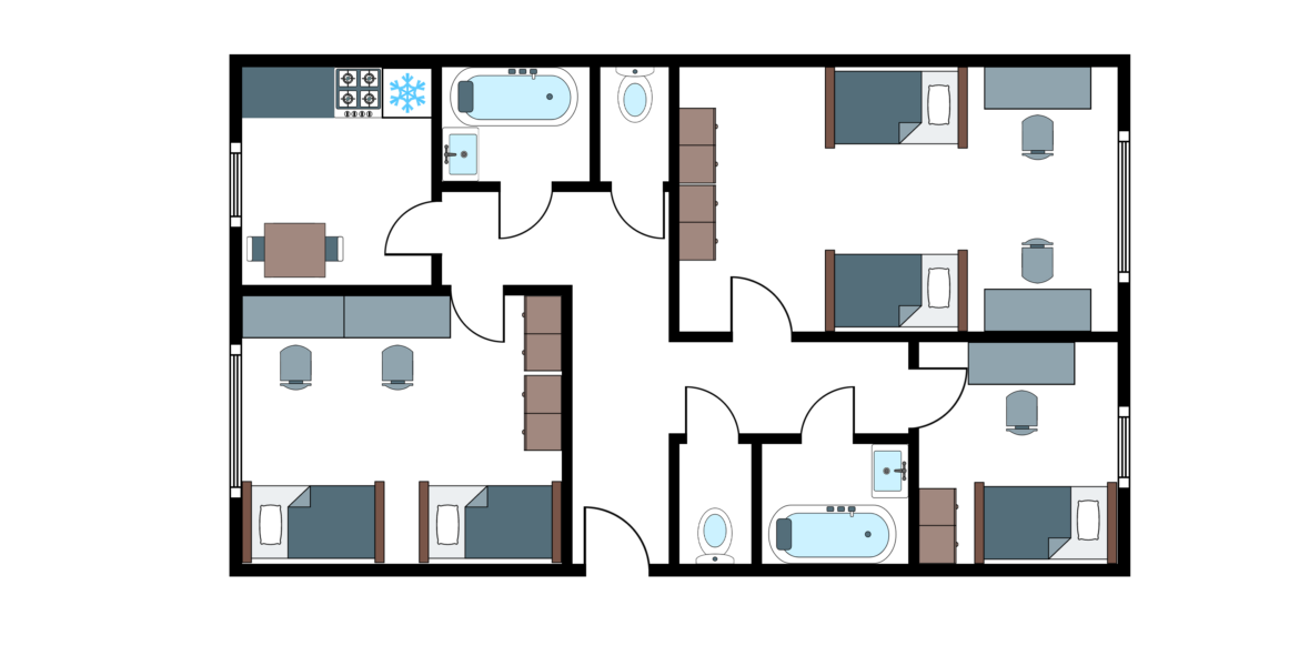 Renoveeritud püstakus asuvad korterid, kus igas korteris on kaks kahekohalist tuba ning WC, duširuum ja köök.