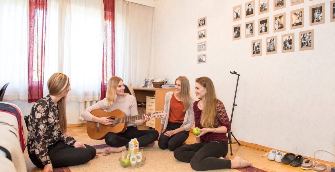 – Ühiskorterid, kus kaks või kolm 1- ja 2-kohalist tuba jagavad omavahel ühiskasutuses kööki, WC-d ja vannituba. Köögis on olemas külmkapp, pliit ja ahi – viimane on tudengite seas eriti hinnatud. Vannitubades on vann koos dušiga.