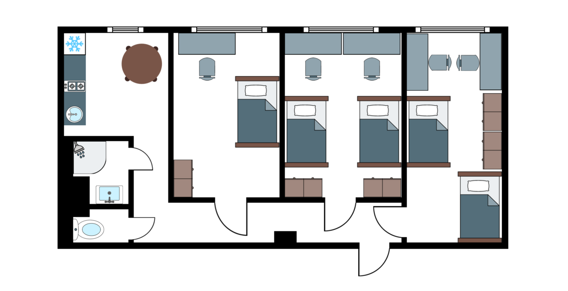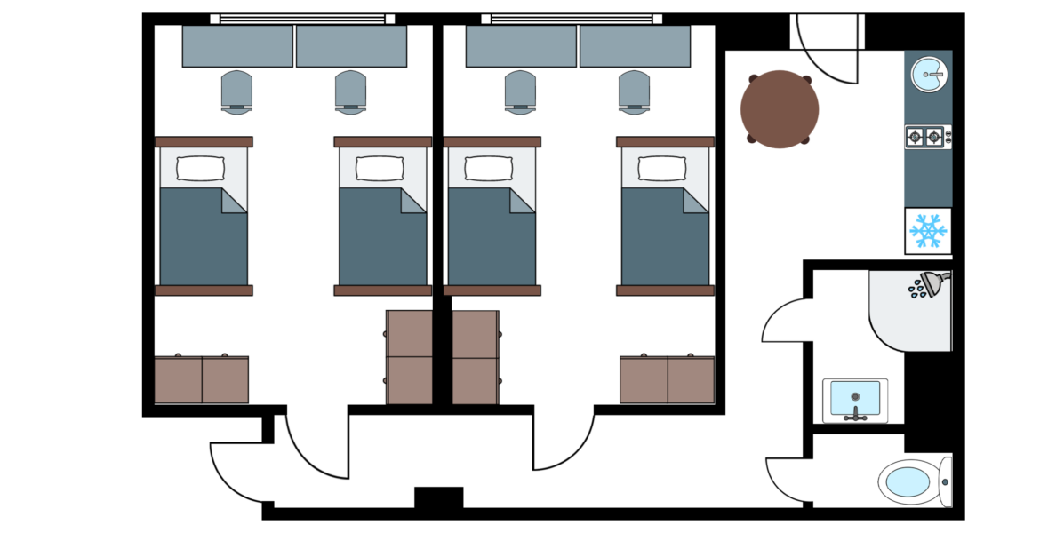 Tiigi 14 student dormitory is located on the edge of the city center, in a quiet area, just 400 meters from the train station – ideal for those who travel by train. It takes about 15 minutes to walk to Tartu’s city center or the main building of the University.