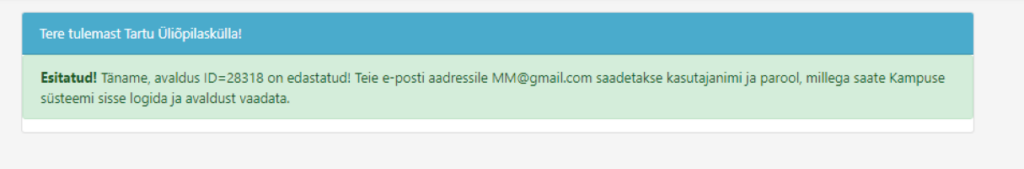NB! Soovitame kohapakkumist ilma üliõpilaskülaga eelnevalt kontakteerumata mitte tagasi lükata!